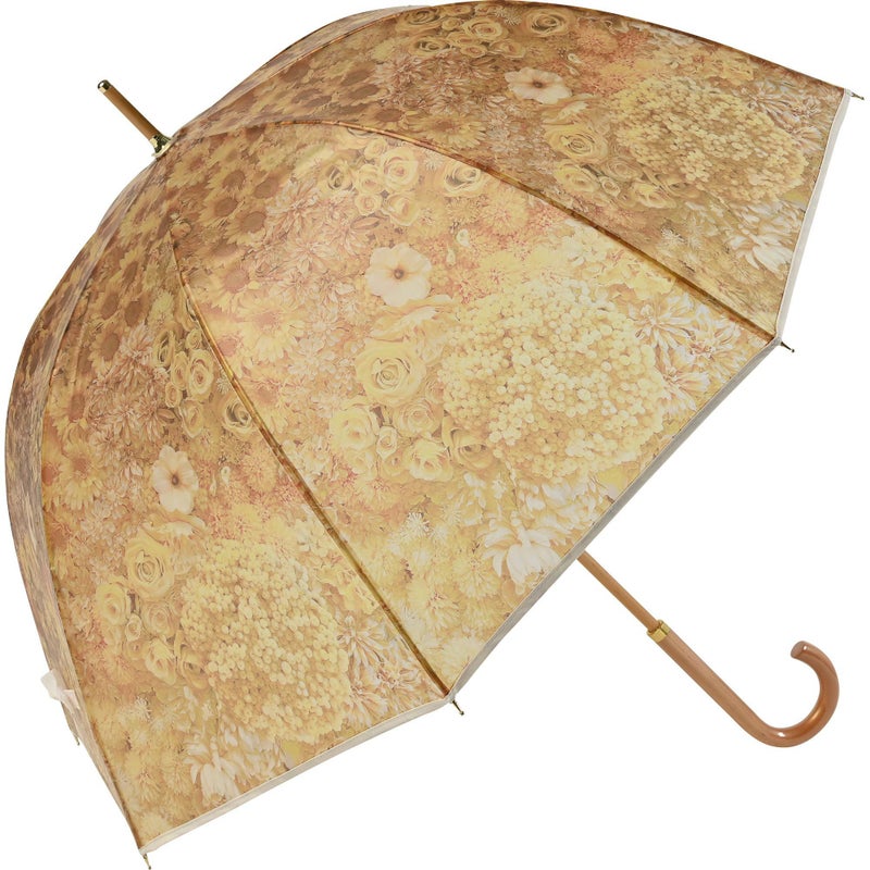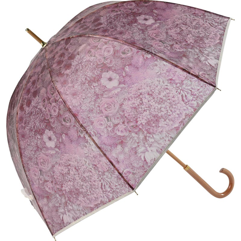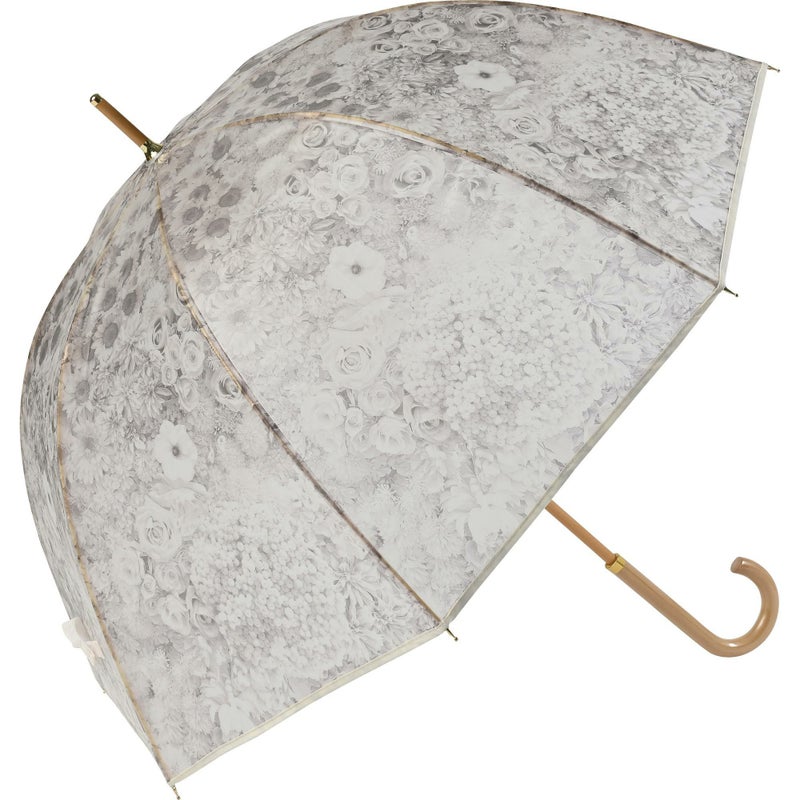 淡いくすみカラーの花柄がアンティークなエレガントさを演出。手元や中棒には木を使用し、ぬくもりも感じられるデザインです。