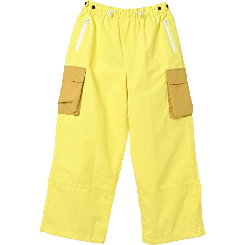 ユニセックスにお使いいただける、大きめでシンプルなデザイン。絶妙なカラーリングの配色で、雨の日も気分が明るくなります。ゆったりサイズですが、ウエストはボタンとドロストコードで調整が可能です。