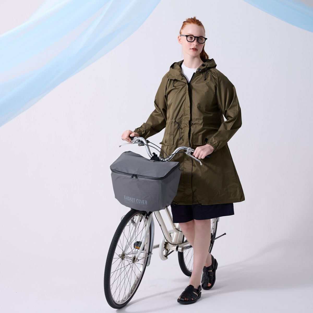前かごまですっぽりカバーしてくれるサイクルポンチョ