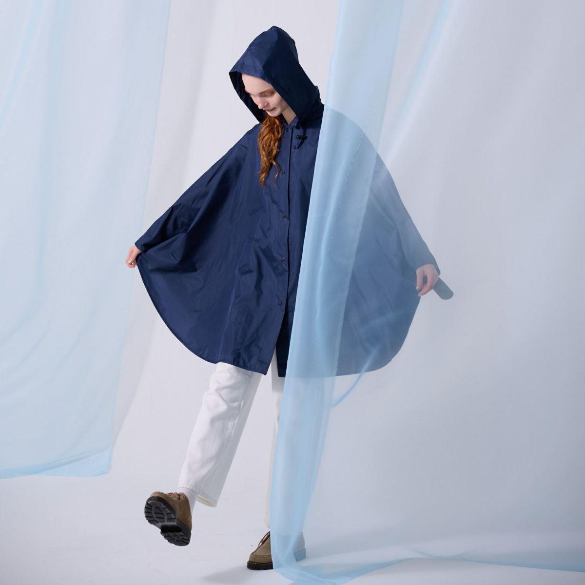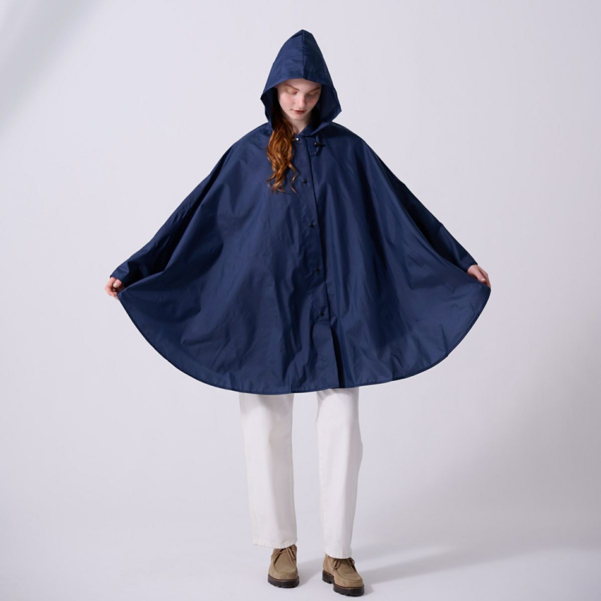 軽くて動きやすいデザインの無地レインポンチョ