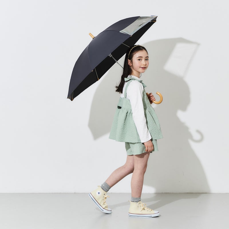 傘を深くさしても前が見える透明窓付き。