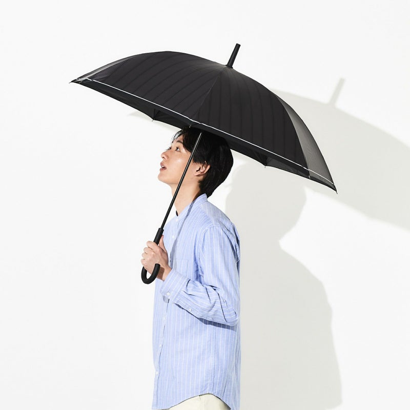 通常の日傘より大きい親骨60cmサイズにシックなデザインなので、男女問わず使えるユニセックス仕様。開くと直径約100cmの大きめサイズで、激しい雨も夏の強い日差しもしっかりカバーできます。