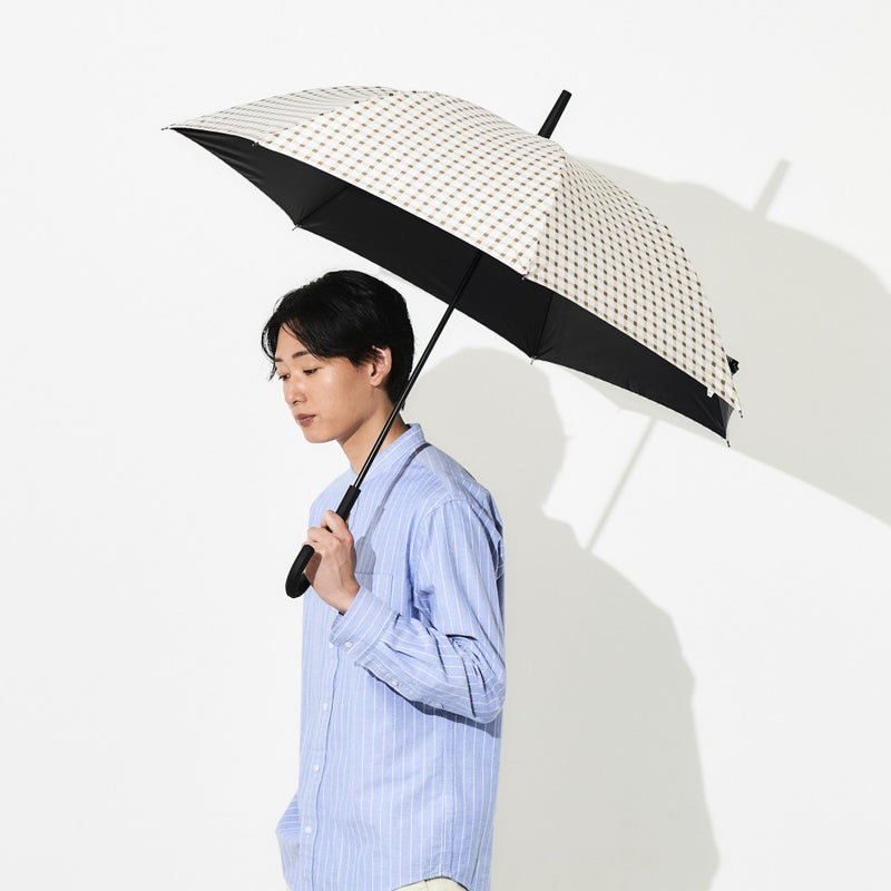 通常の日傘より大きい親骨60cmサイズにシックなデザインなので、男女問わず使えるユニセックス仕様。開くと直径約100cmの大きめサイズで、激しい雨も夏の強い日差しもしっかりカバーできます。