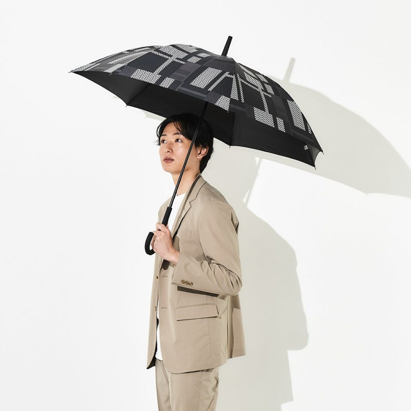 通常の日傘より大きい親骨60cmサイズにシックなデザインなので、男女問わず使えるユニセックス仕様。開くと直径約100cmの大きめサイズで、激しい雨も夏の強い日差しもしっかりカバーできます。