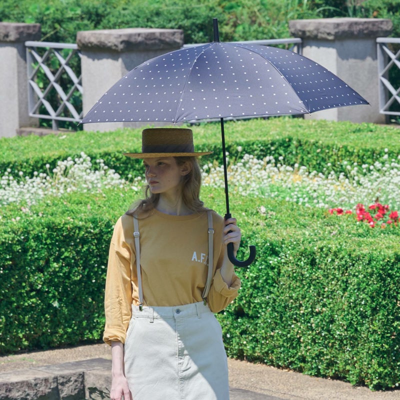 通常の日傘より大きい親骨60cmサイズにシックなデザインなので、男女問わず使えるユニセックス仕様。開くと直径約100cmの大きめサイズで、激しい雨も夏の強い日差しもしっかりカバーできます。