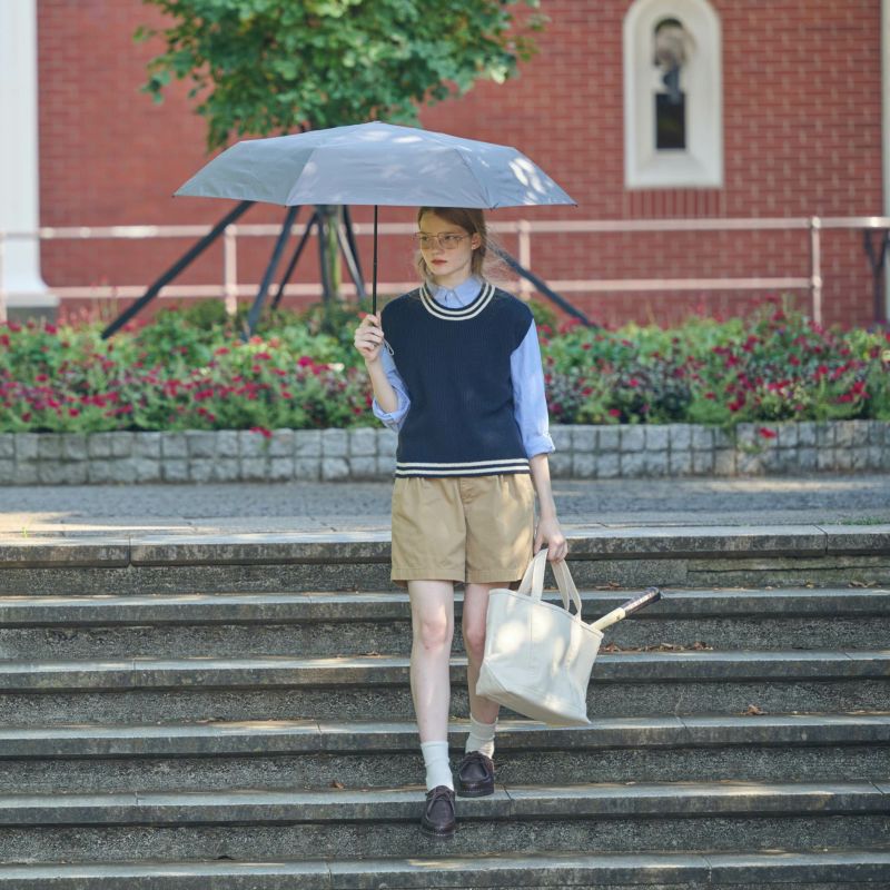 ユニセックスにお使いいただける、シンプルな折りたたみ傘。シーンを選ばない絶妙なカラーリングで、雨の日も気分が明るくなります。