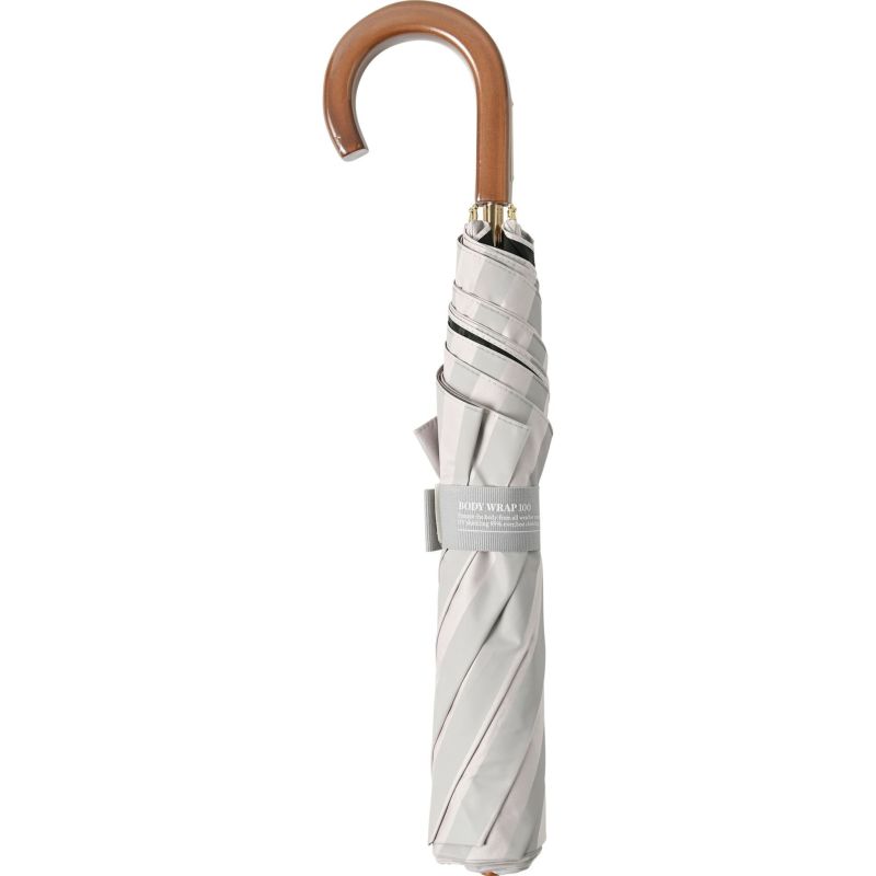 大きくてまんまるな形が日差しや雨から守る なボーダー柄の二段折り日傘 日傘 ボールドストライプ 《BODY WRAP 100》 二段折りたたみ傘 BM913