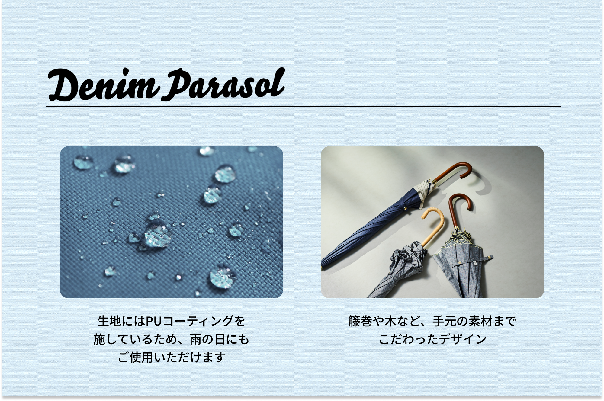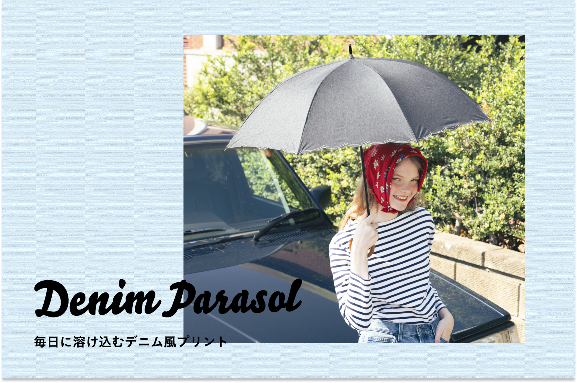 【毎日に溶け込むデニム風プリント日傘】