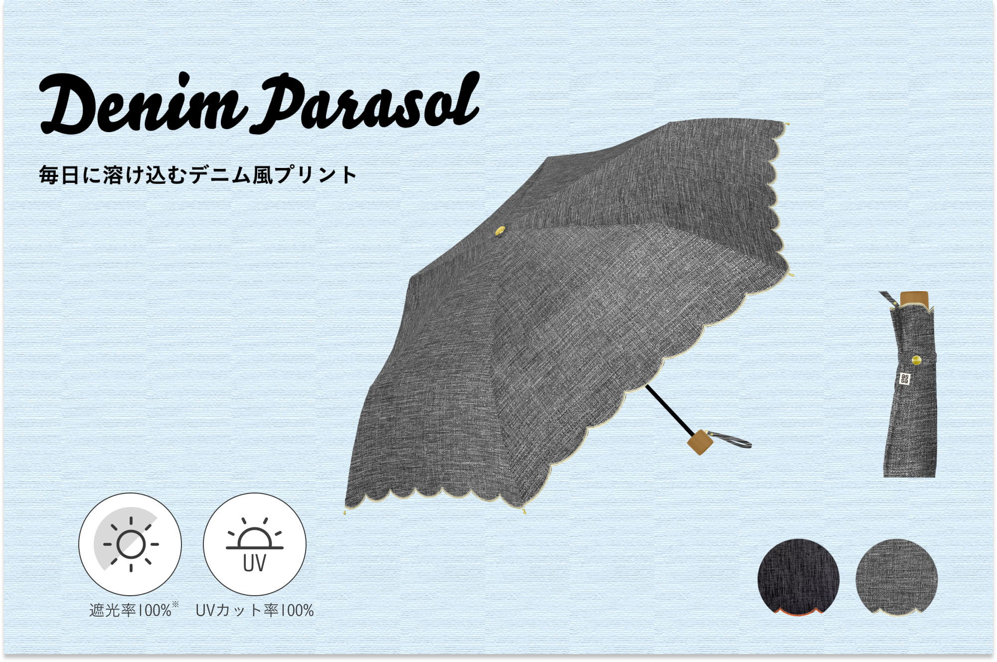 【毎日に溶け込むデニム風プリント日傘】