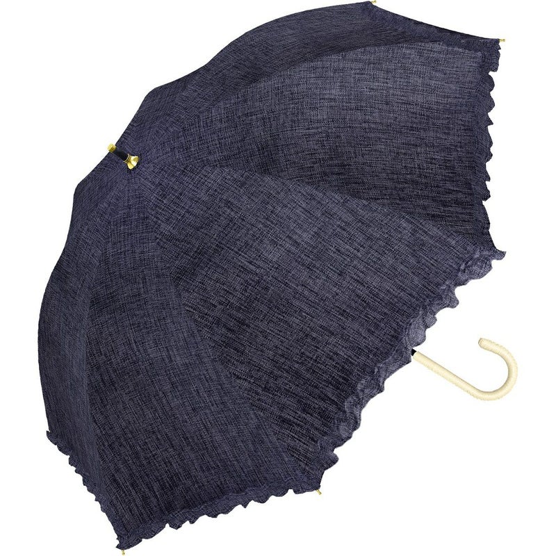 毎日に溶け込むデニム風プリント 日傘 デニムフリル 長傘 FL911