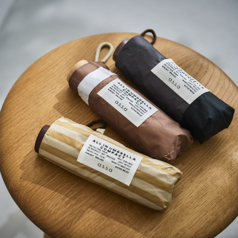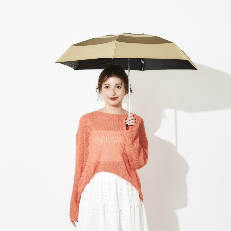 高密度軽量生地と5段階に折りたためるコンパクトサイズの傘骨仕様で、軽くてコンパクトな晴雨兼用傘。小さなバッグにも入るので、天候が不安定なときにも持っておきたい1本です。