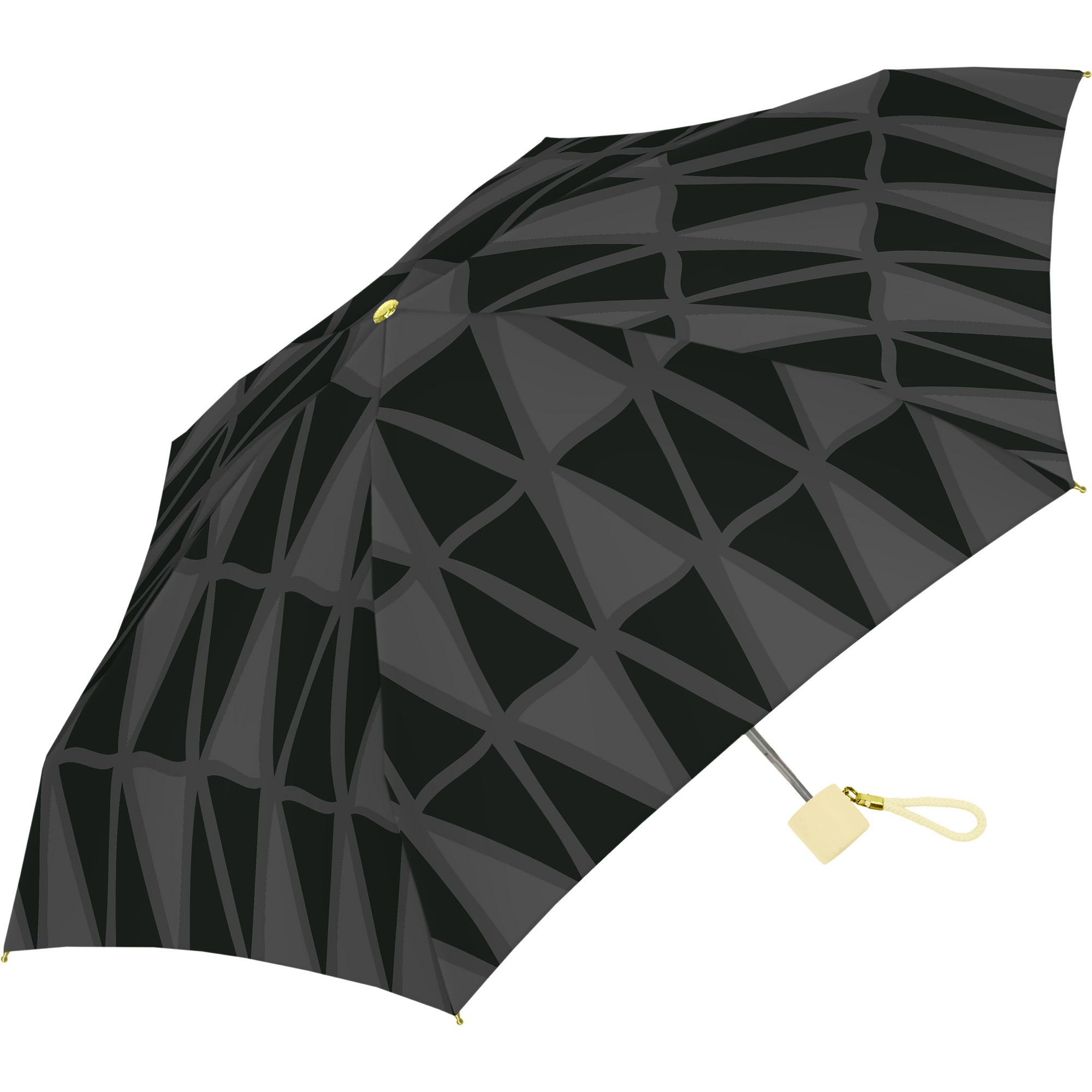 高密度軽量生地と5段階に折りたためるコンパクトサイズの傘骨仕様で、軽くてコンパクトな晴雨兼用傘。小さなバッグにも入るので、天候が不安定なときにも持っておきたい1本です。