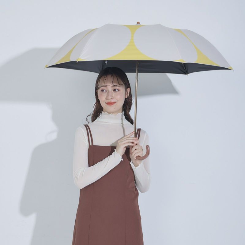 親骨は通常の日傘より大きい親骨55cm(通常のレディース日傘:親骨50cm)。深張りなので大きくて丸いシルエット。日差しや雨から体を包み込むように守ります。