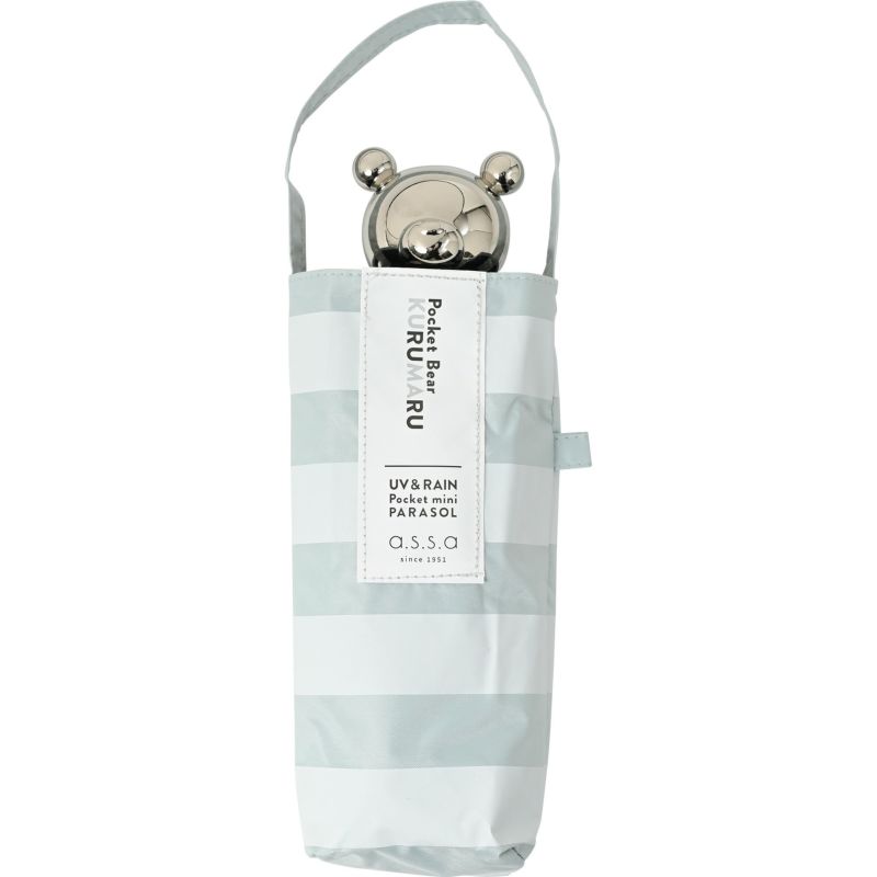 お布団にくるまった、くまさん持ち手の折りたたみ日傘 日傘 ボーダー 《KURUMARU》 5段ミニ折りたたみ傘 FMM822