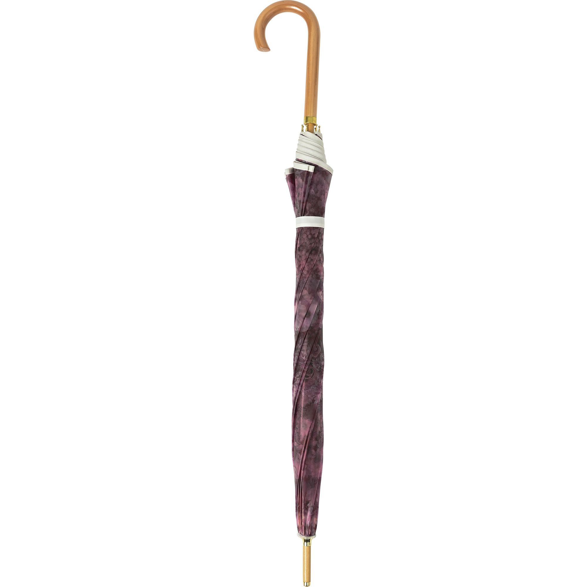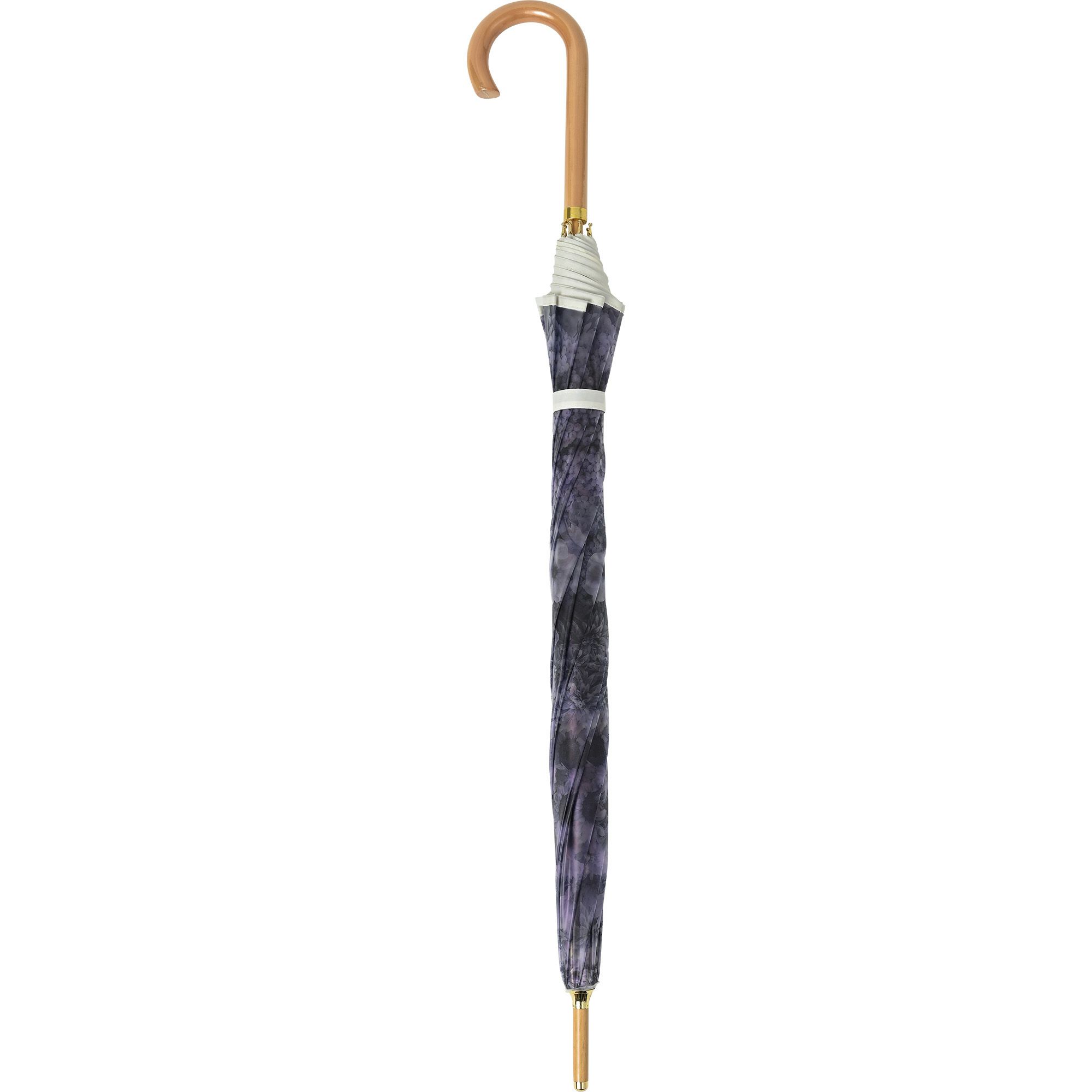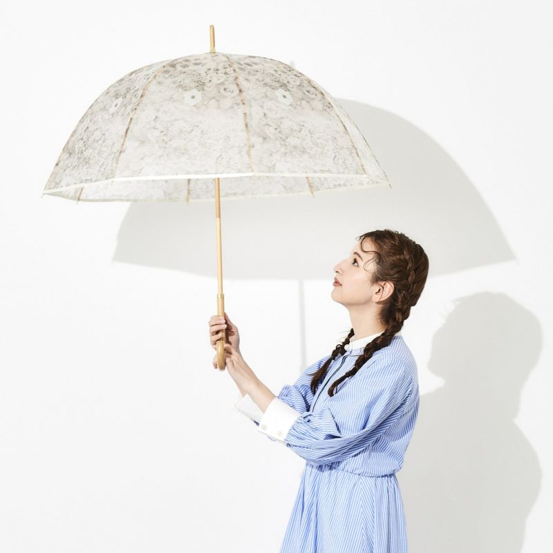 淡いくすみカラーの花柄がアンティークなエレガントさを演出。手元や中棒には木を使用し、ぬくもりも感じられるデザインです。