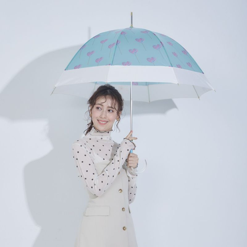ポップなお菓子の柄が、傘を開くと全面に広がります。手元もキャンディみたいなクリア素材で、憂鬱な雨の日も気分の上がる傘です。