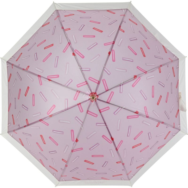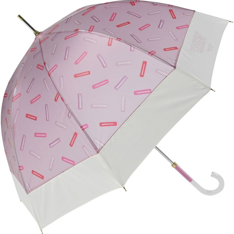 ポップなお菓子の柄が、傘を開くと全面に広がります。手元もキャンディみたいなクリア素材で、憂鬱な雨の日も気分の上がる傘です。