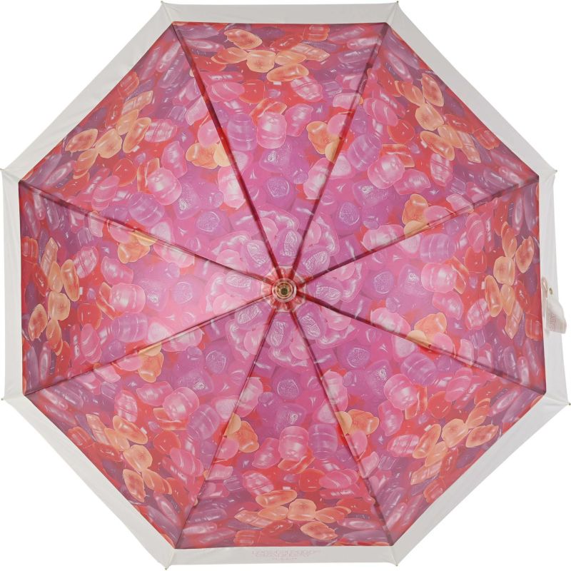 ポップなお菓子の柄が、傘を開くと全面に広がります。手元もキャンディみたいなクリア素材で、憂鬱な雨の日も気分の上がる傘です。