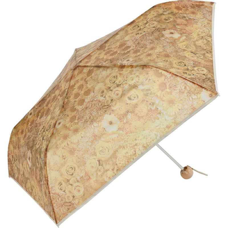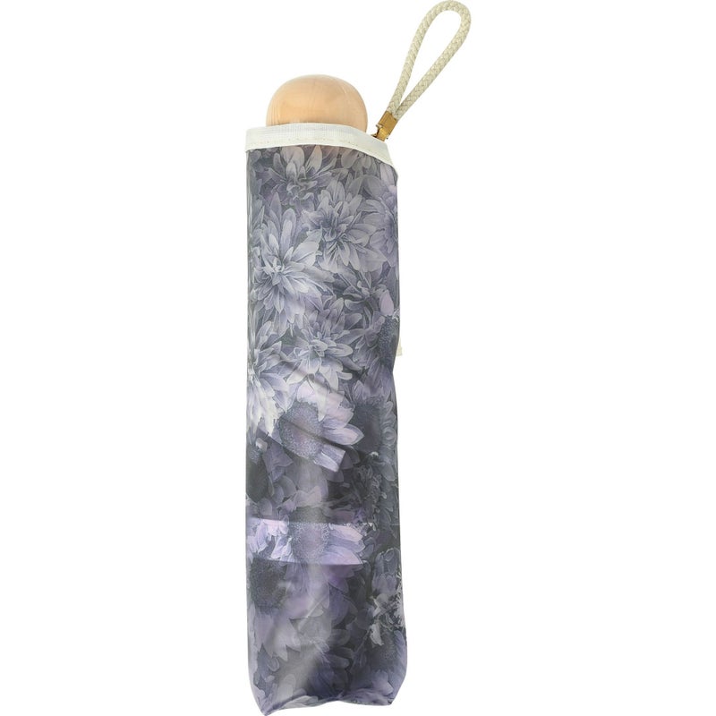 淡いくすみカラーの花柄がアンティークなエレガントさを演出。手元にはころんとしたシルエットの木を使用し、ぬくもりも感じられるデザインです。